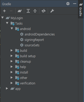 오른쪽에 Gradle 탭에서 signing Report에 들어가서 SHA1 키를 복사한다.