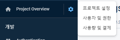 홈으로 나와서 왼쪽 메뉴에 있는 개발-Authentication 클릭