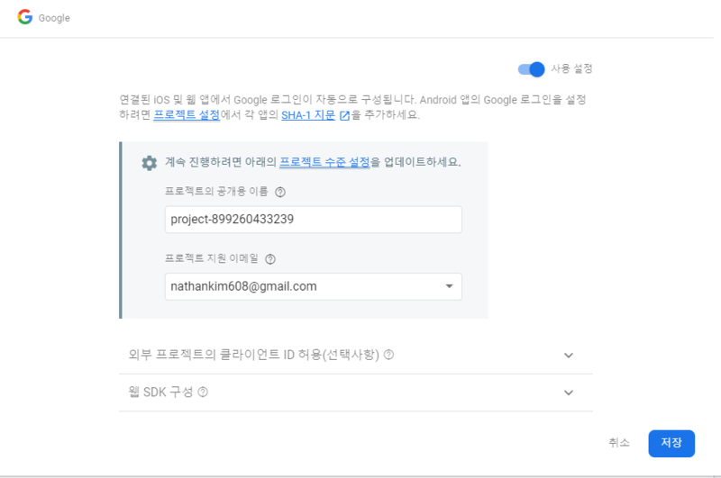 사용설정으로 바꾸고 이메일 기입 후 저장