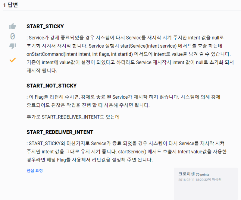 출처: https://hashcode.co.kr/questions/1082/%EC%84%9C%EB%B9%84%EC%8A%A4%EC%97%90%EC%84%9C-start_sticky%EC%99%80-start_not_sticky%EC%9D%98-%EC%B0%A8%EC%9D%B4%EB%8A%94-%EB%AD%94%EA%B0%80%EC%9A%94